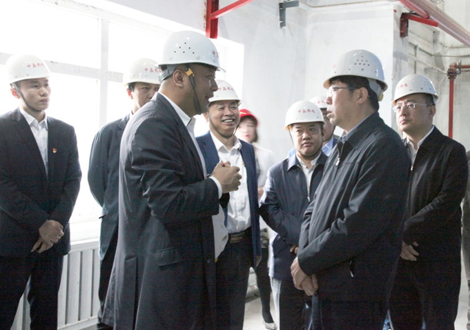 范業(yè)群、王國茂、韋毅民陪同王兆力、楊愛國、劉海濤在中控室視察